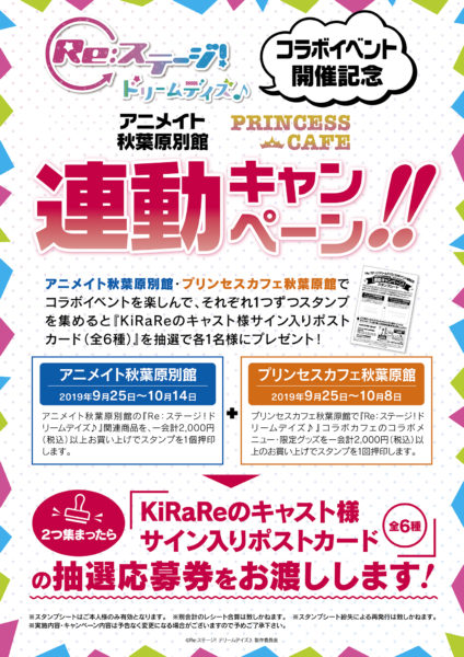 アニメイト秋葉原別館にて開催予定の「Re:ステージ!ドリームデイズ♪」POPUPコーナー「きらり☆ドリームフェア」と「プリンセスカフェ」の連動企画の開催が決定しました!